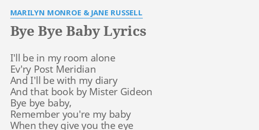 Original lyrics of Bye Bye Baby song by Marilyn Monroe. Ill be in my room alone Every post meridian And Ill read my diary And that book by Mister Gideon Bye bye baby Remem.